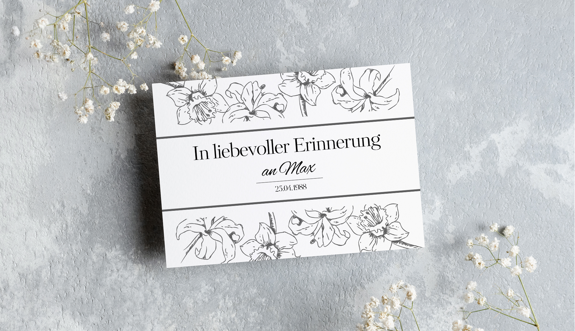 Dankeskarten, Grußkarten, Trauerkarten und Einladungen jeder Art, wir erstellen Ihnen drei auf Sie zugeschnittene Entwürfe von denen Sie sich Ihren Favoriten aussuchen können und wir genau auf Ihre Wünsche anpassen.